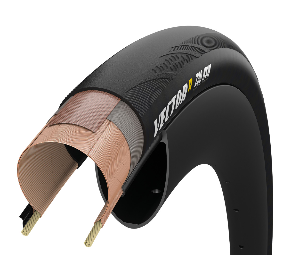 Optimised around Zipp's new 353 NSW the all-new Goodyear Vector R Z30 NSW is developed with lightweight in mind. A short-ply construction and ultra supple 150 TPI casing perfectly complement the Zipp 353 NSW to conquer mountain summits while the R:Shield breaker provides protection for all-day riding. The rolling qualities of the Dynamic:UHP compound will be your ally in the conquest of those challenges.